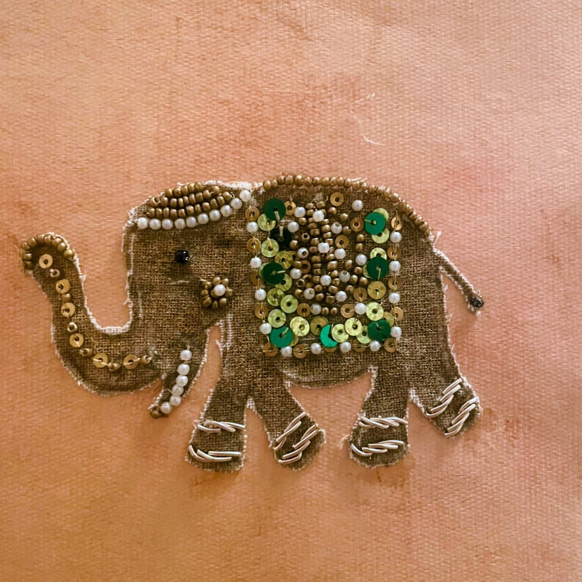 - Sew-on Patch: A charming 3” x 4” hand-embroidered patch crafted on soft cotton with a pre-cut gold print elephant motif. Decorated with sequins, seed beads, and basic stitches like backstitch, couching, and French knots, this project introduces you to mixed-material surface embroidery. Perfect as a patch for garments, bags, or framing—yours to take home at the end of the workshop!